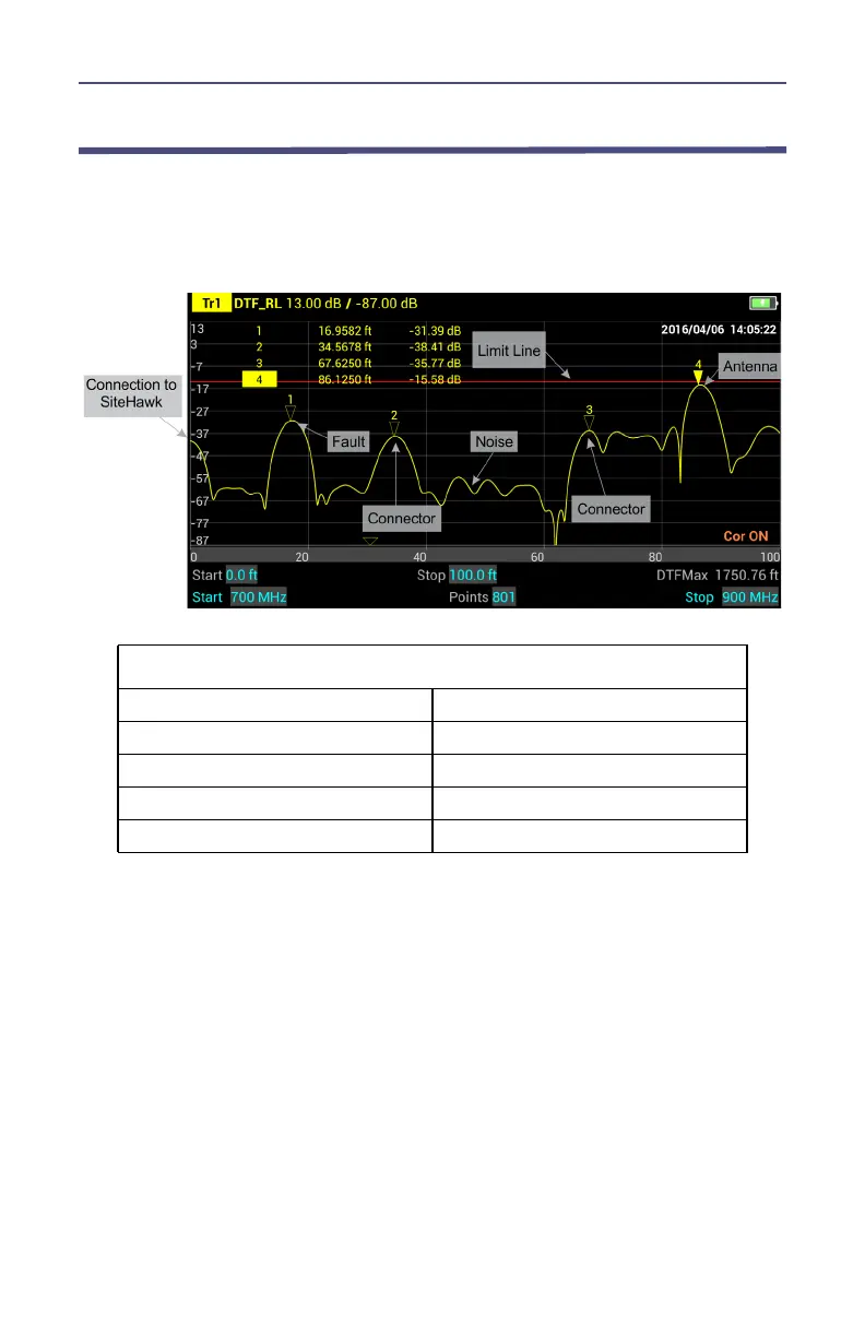 The graph below shows a typical Fault Location measurement for an antenna