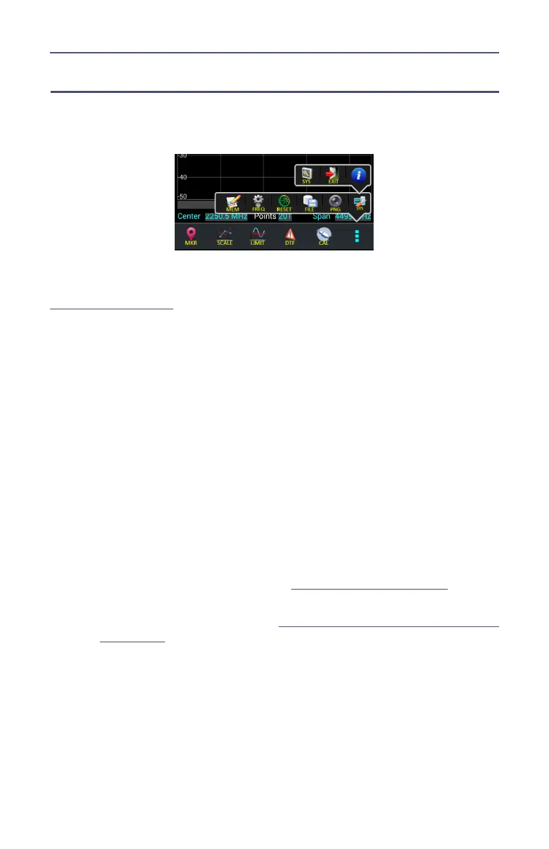 SYS menu is accessed by pressing the Menu icon, then pressing the SYS icon.