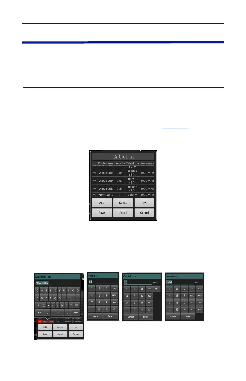 5. Press each cell for Cable name, Velocity, Cable Loss and Frequency to enter