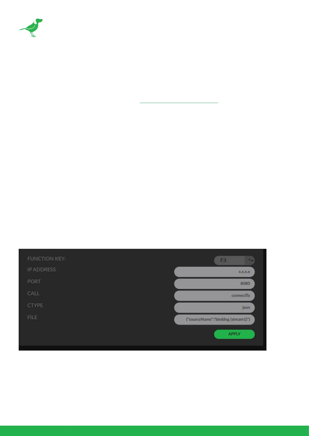 In the example below, the F3 key is congured to instruct a BirdDog device, identied by address