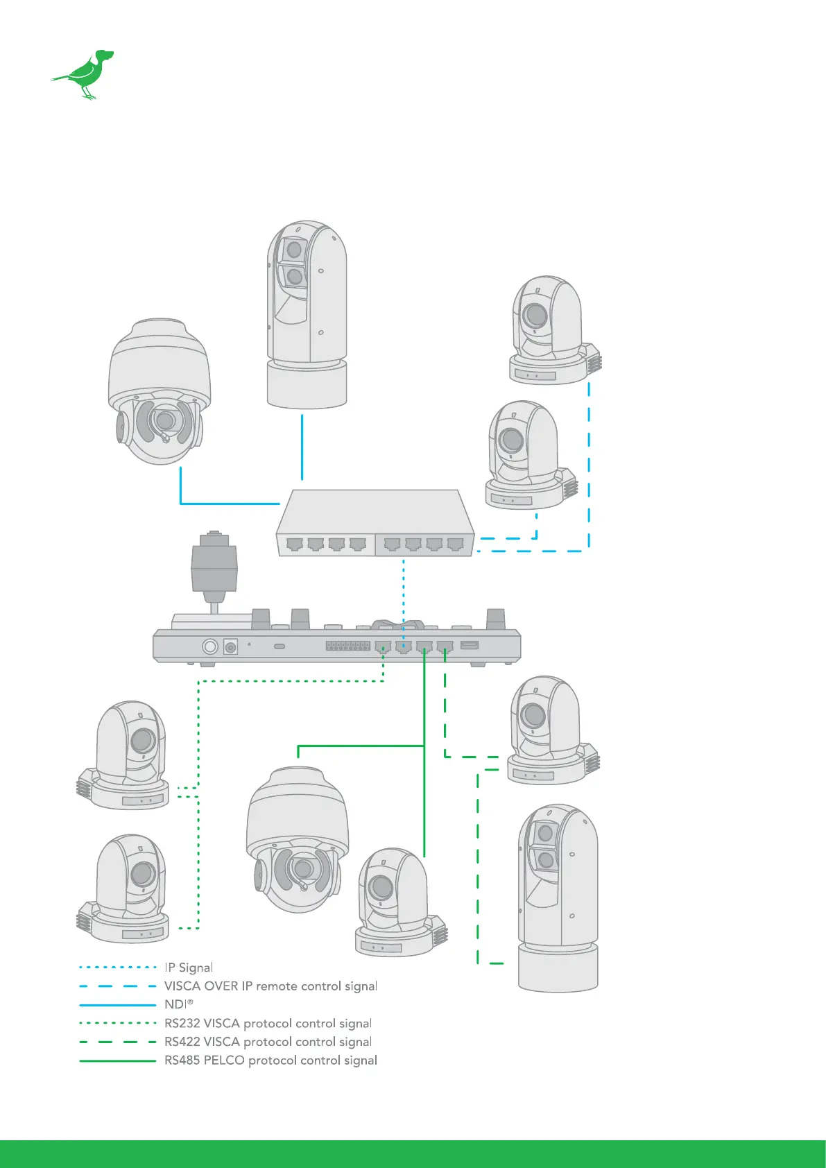 Using VISCA, PELCO, VISCA OVER IP, NDI® in one single system.