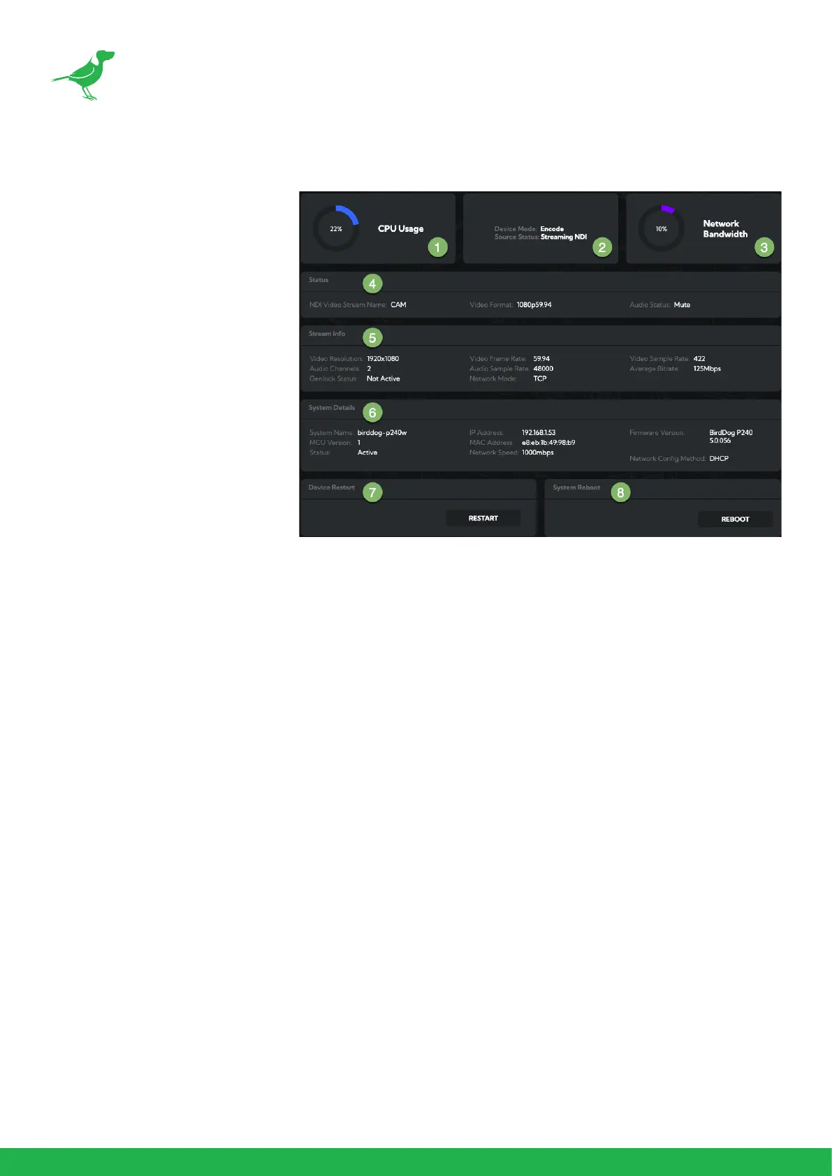 Click this button to reboot the unit after changing key network settings or the BirdDog name.
