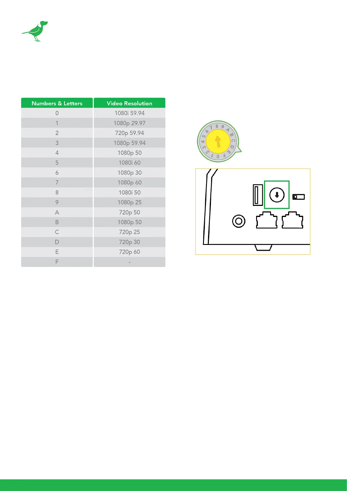birddog P240 - Video Format Selection; Rotary Switch for Video Format