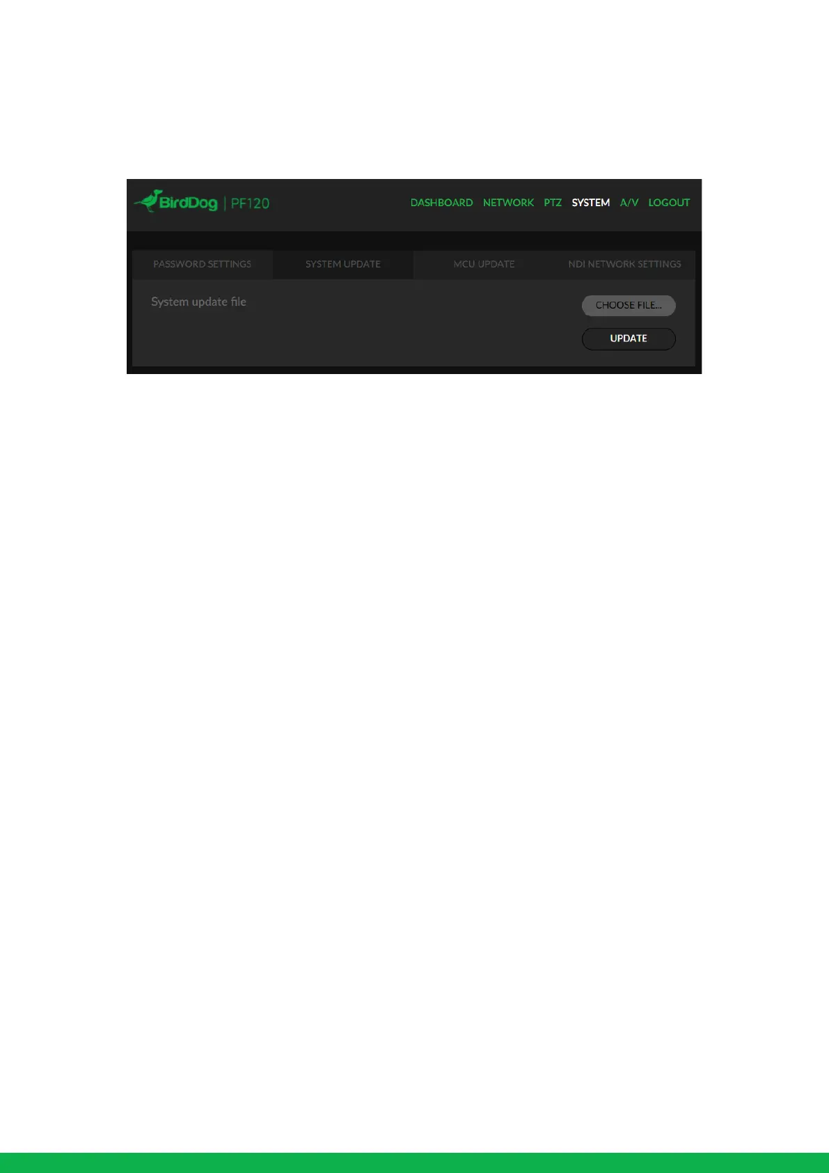 2. Log into the PF120 Web user interface, the default password is ‘birddog’.
