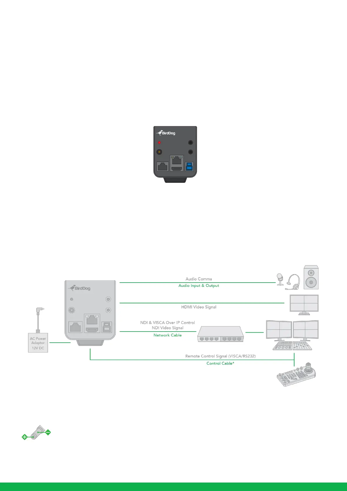 As soon as BirdDog PF120 detects a power input signal the power light on the back panel will light up red.