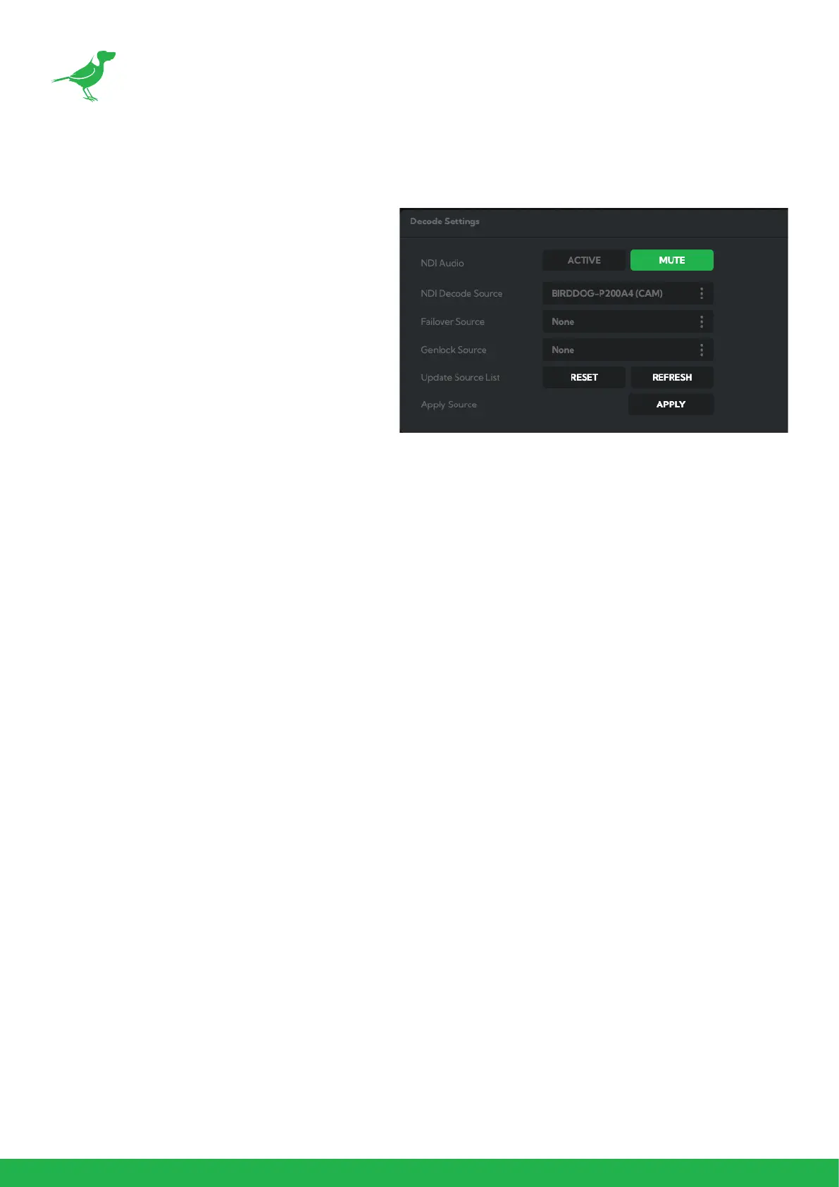 NDI® source for the failover function from the Available NDI Sources dropdown list. Click the Reset button to reset