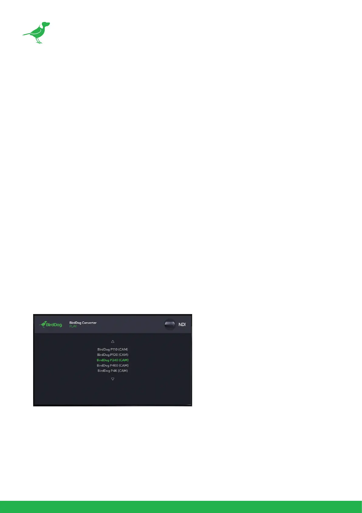 1. Once you've made your connections, the TV will display the BirdDog splash-screen. The PLAY IP address will