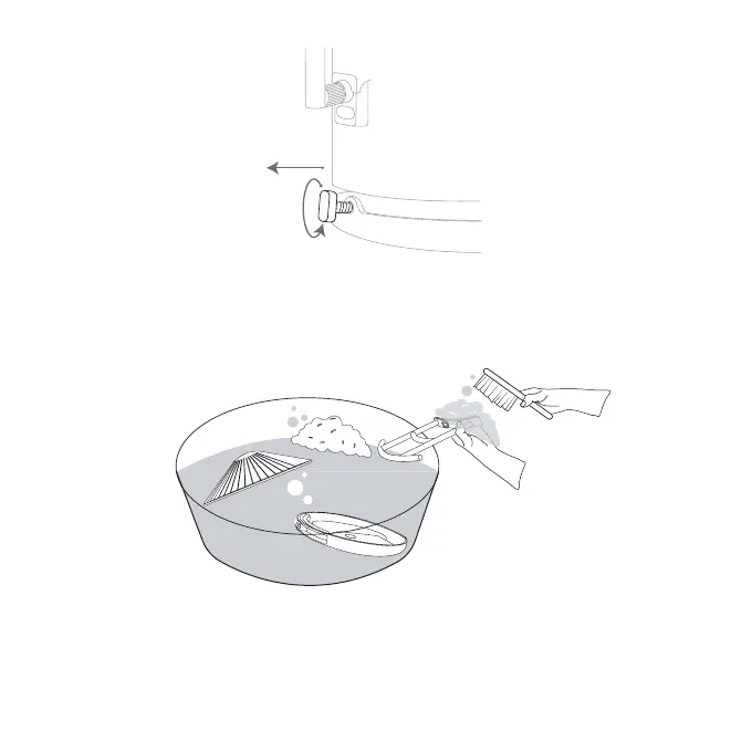 Step 6: Clean the roof, perch, and feeding tray in a bucket with a brush and