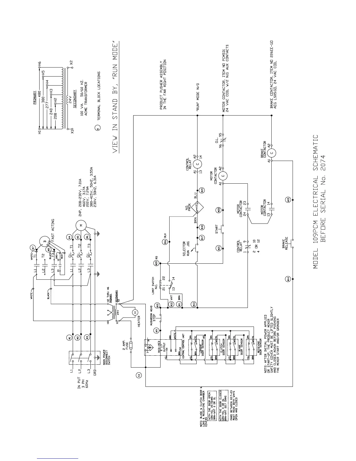 BIRO 109PCM - Wiring Diagram: 200;208;230;460 V-60 Hz-3 Ph