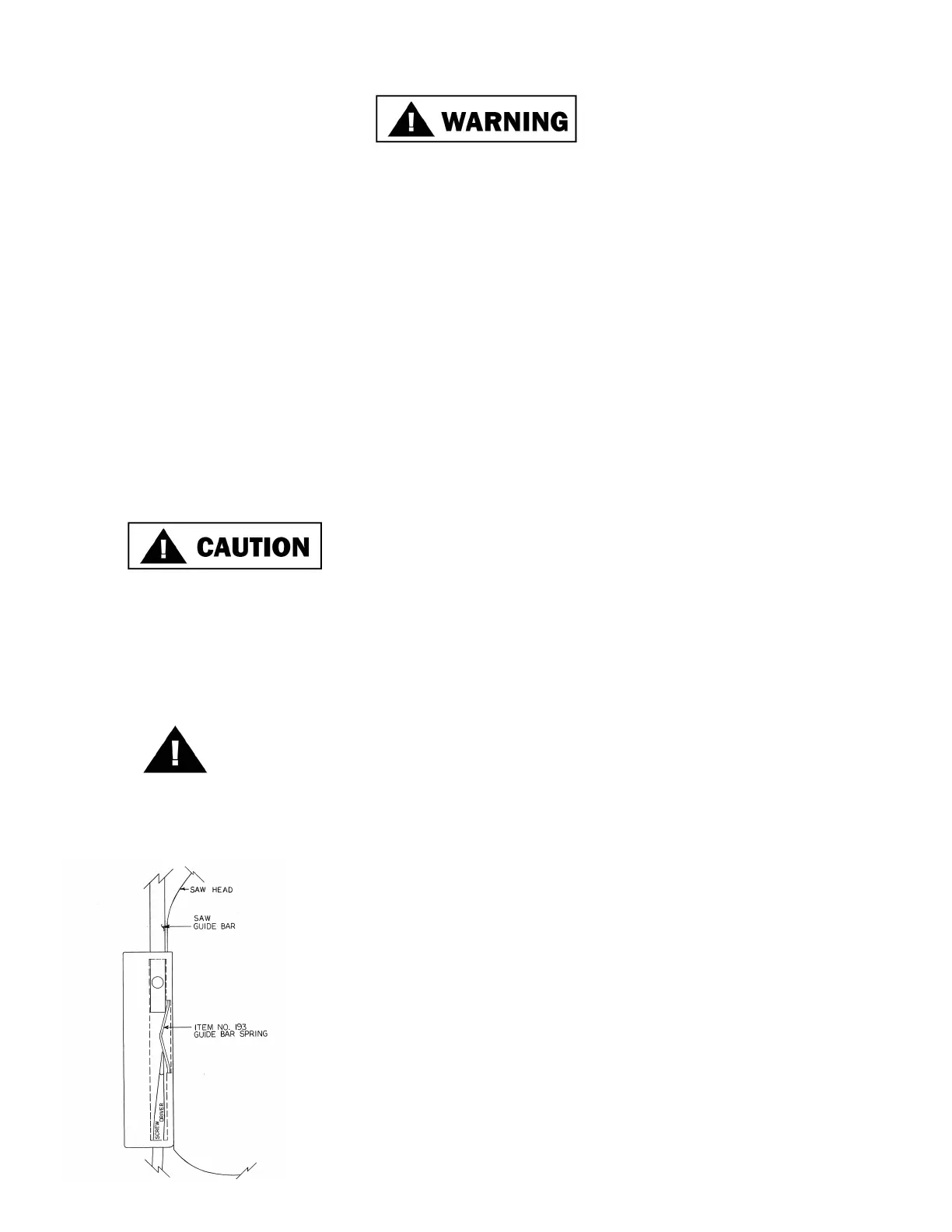 of upper saw guide (Item No. 602B), replace every six (6) months. Check adjustment of upper saw