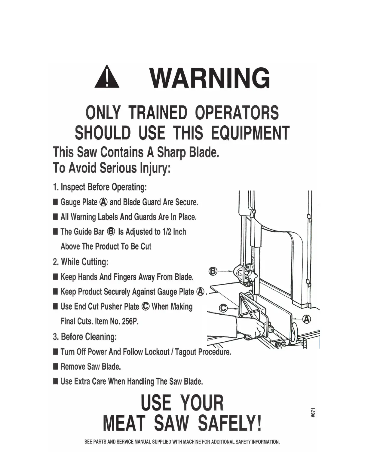 ATTACH TO WALL IN VICINITY OF MACHINE IN EASY VIEW OF OPERATOR