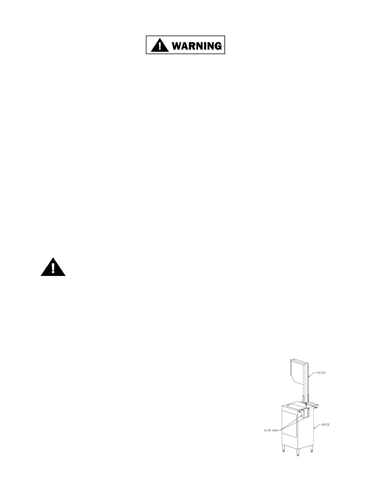 slide gibs are oiled or greased to ensure free vertical movement of the head structure.
