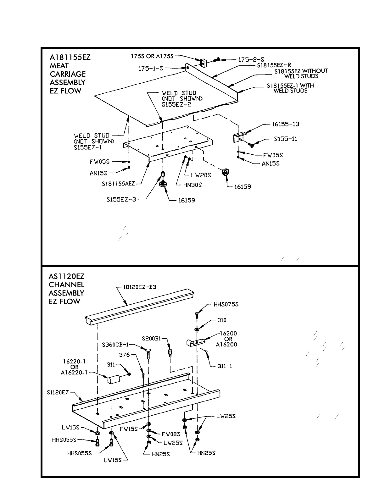 STANDARD 3334-4003 EZ FLOW MEAT CARRIAGE & CHANNEL