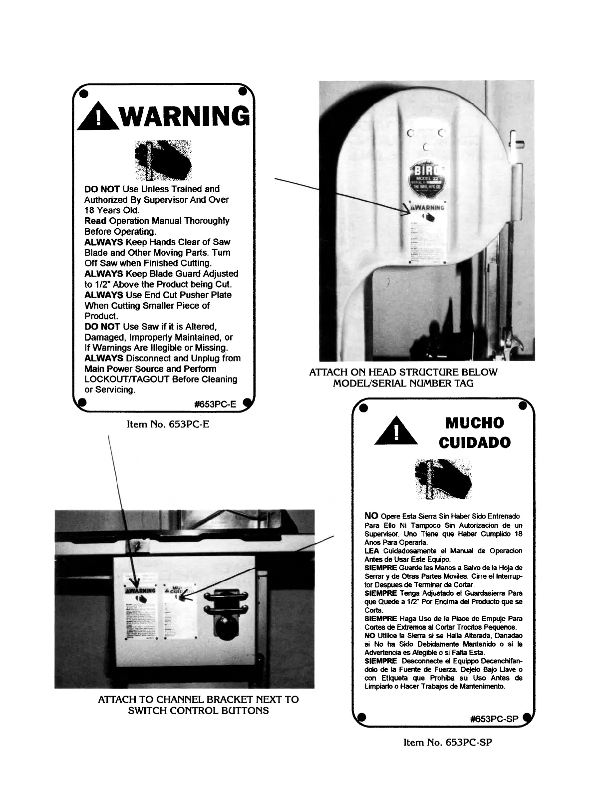 BIRO 3334 - Warning Label Locations on Machine