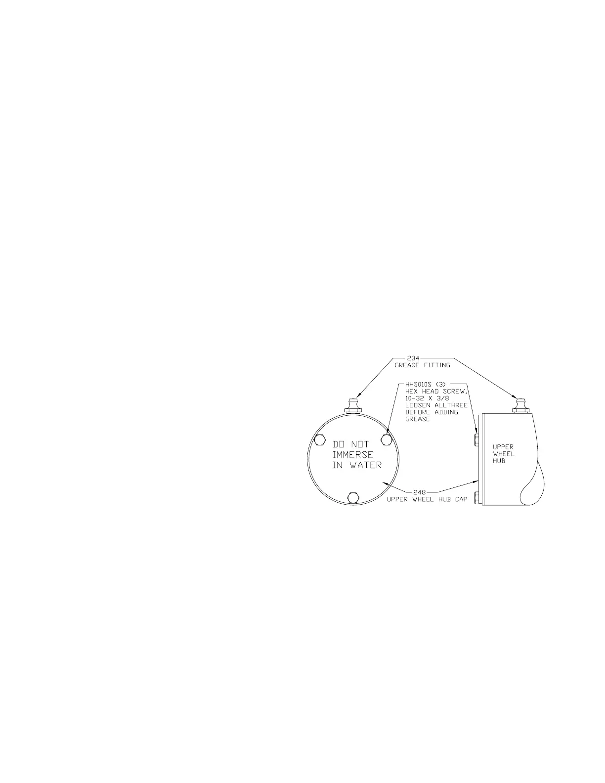 When lubricating the upper wheel bearing it is important that the three hex head