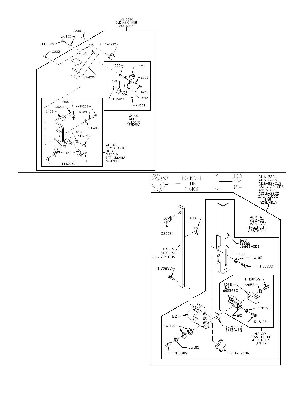 Guide bracket saw cleaner assembly, SS