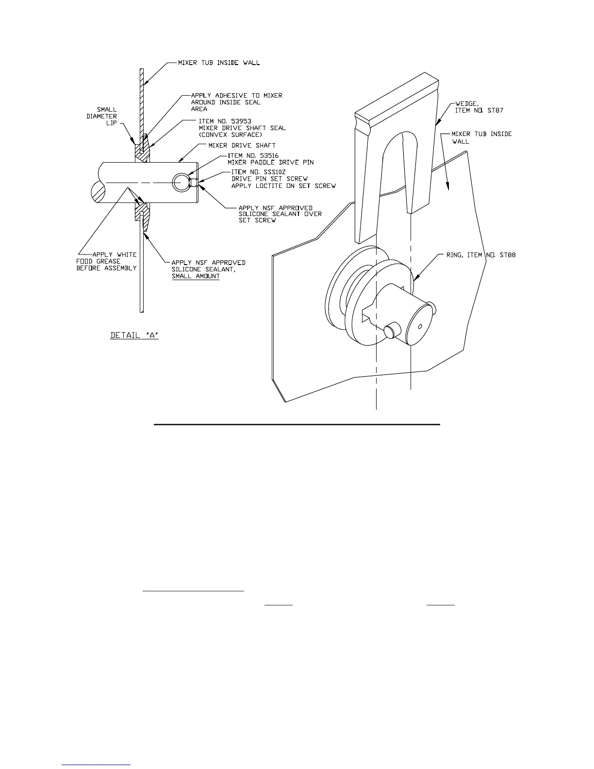 5. Assemble new Mixer Drive Shaft Seal. See Detail “A”.