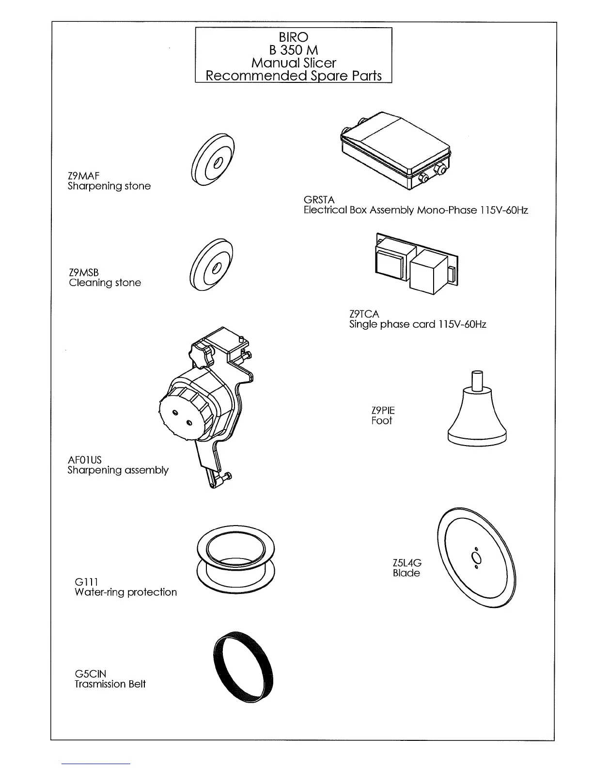 BIRO B350M - RECOMMENDED SPARE PARTS