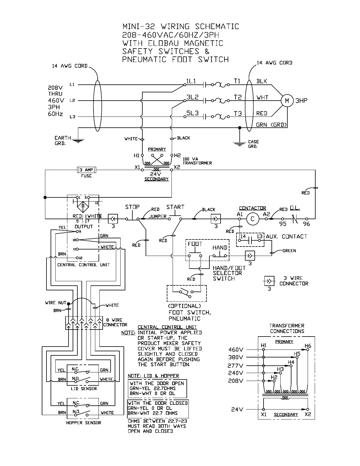 BIRO Mini-32 - Wiring Schematics; Main Power and Control Wiring; Sensor and Transformer Wiring