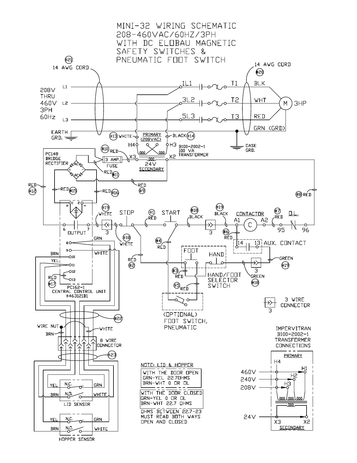 BIRO Mini-32 - Foot Switch Wiring and Adjustment; Foot Switch Adjustment Procedure; Foot Switch Parts Identification