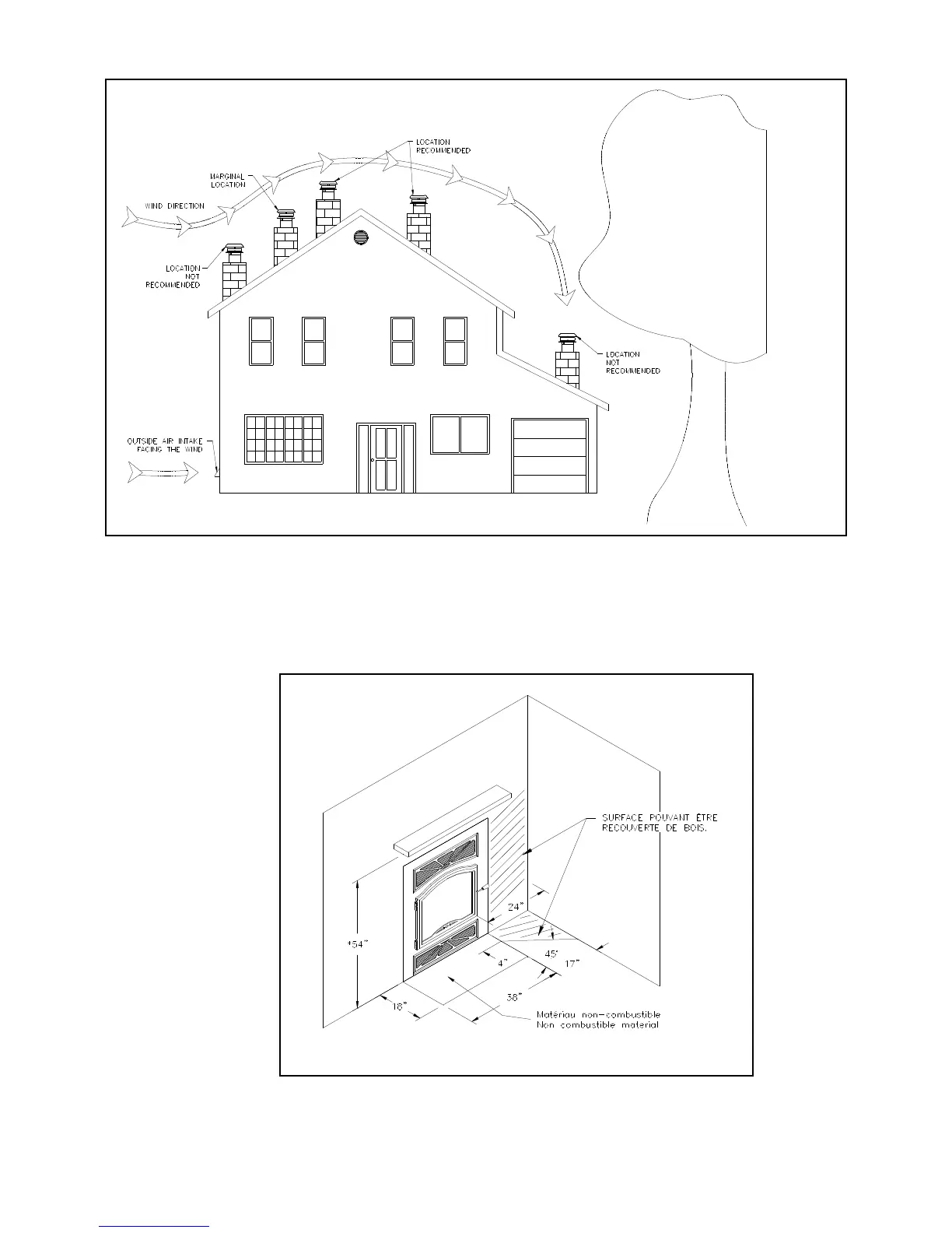 The fireplace can be installed directly on a combustible floor. Combustible floor in front