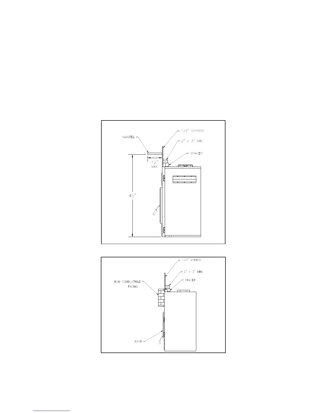 The mantel must be installed at least 45" (1143 mm) above the base of the fireplace (figure