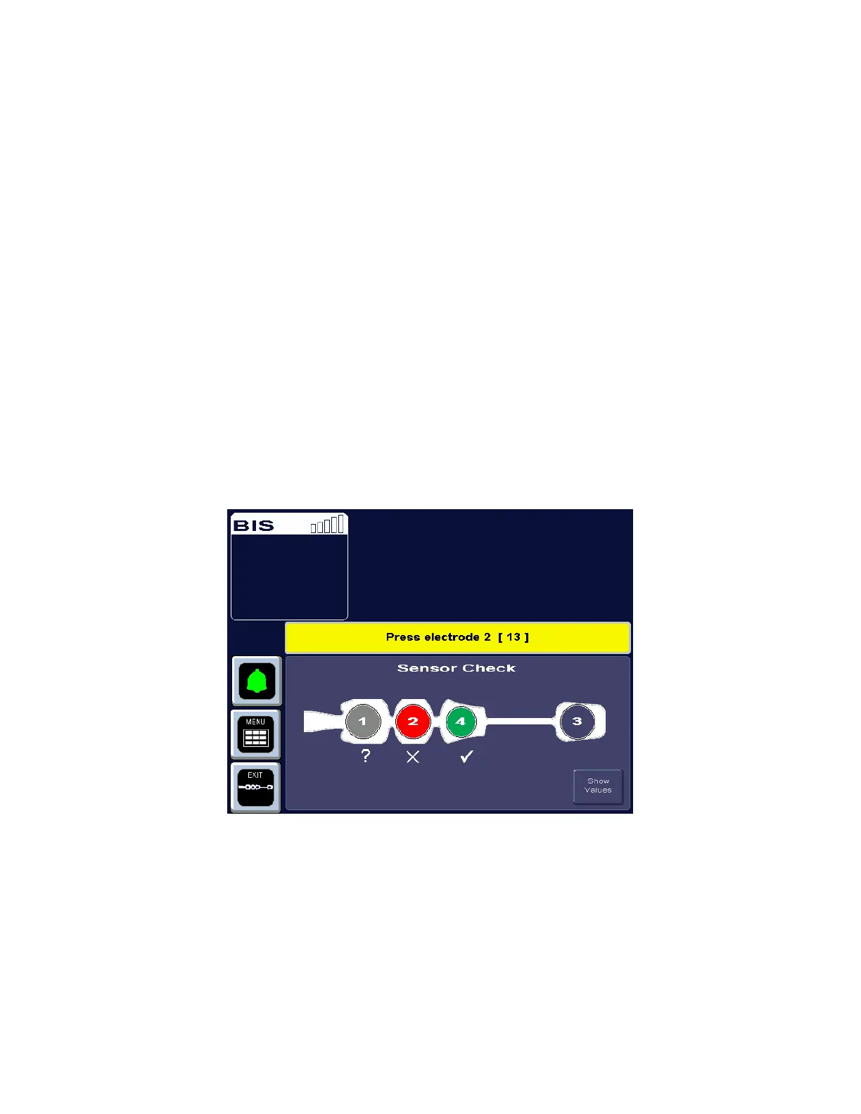 the Sensor Check Graphic Screen displays. This screen shows the sensor with each electrode