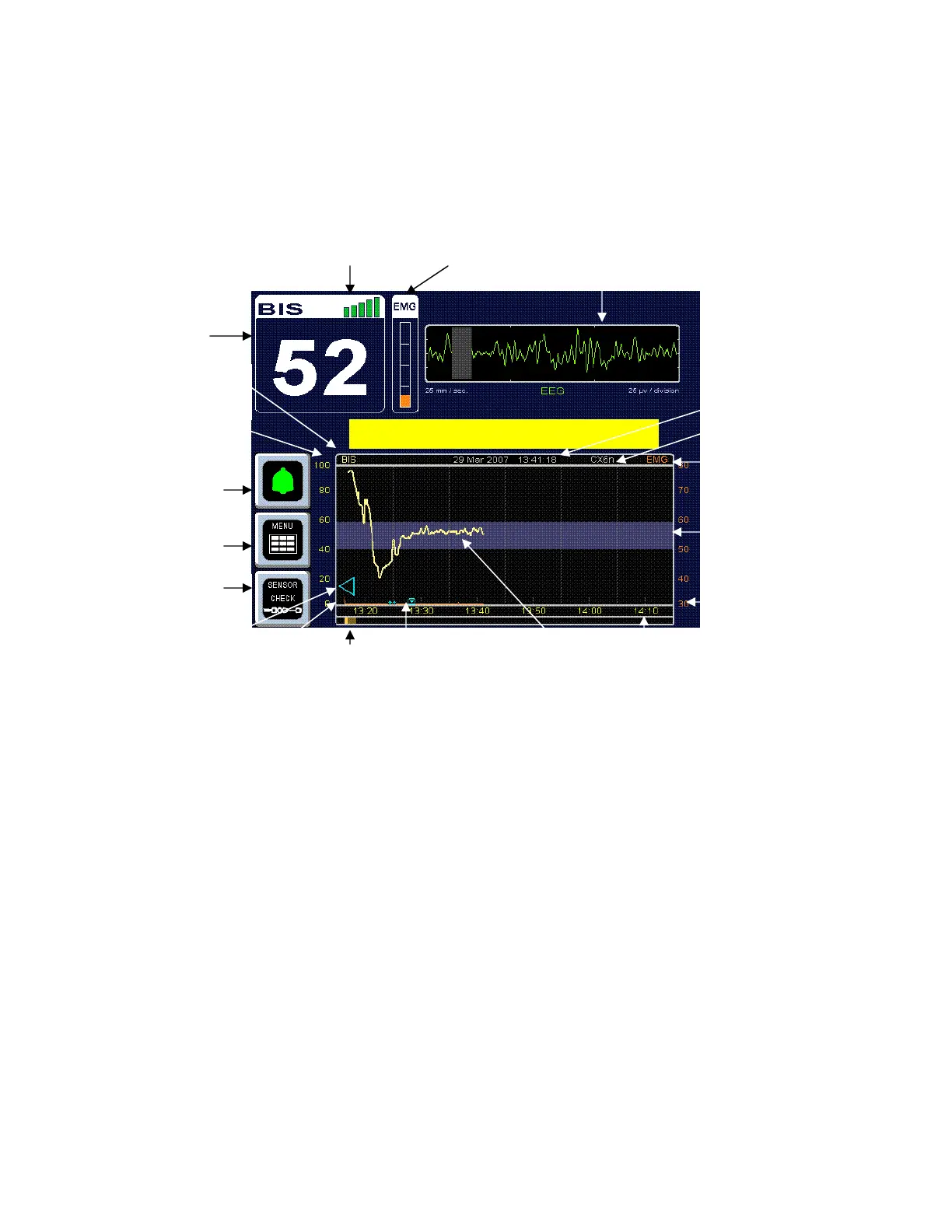 The current numeric value of the BIS is displayed in the upper left corner of the screen.