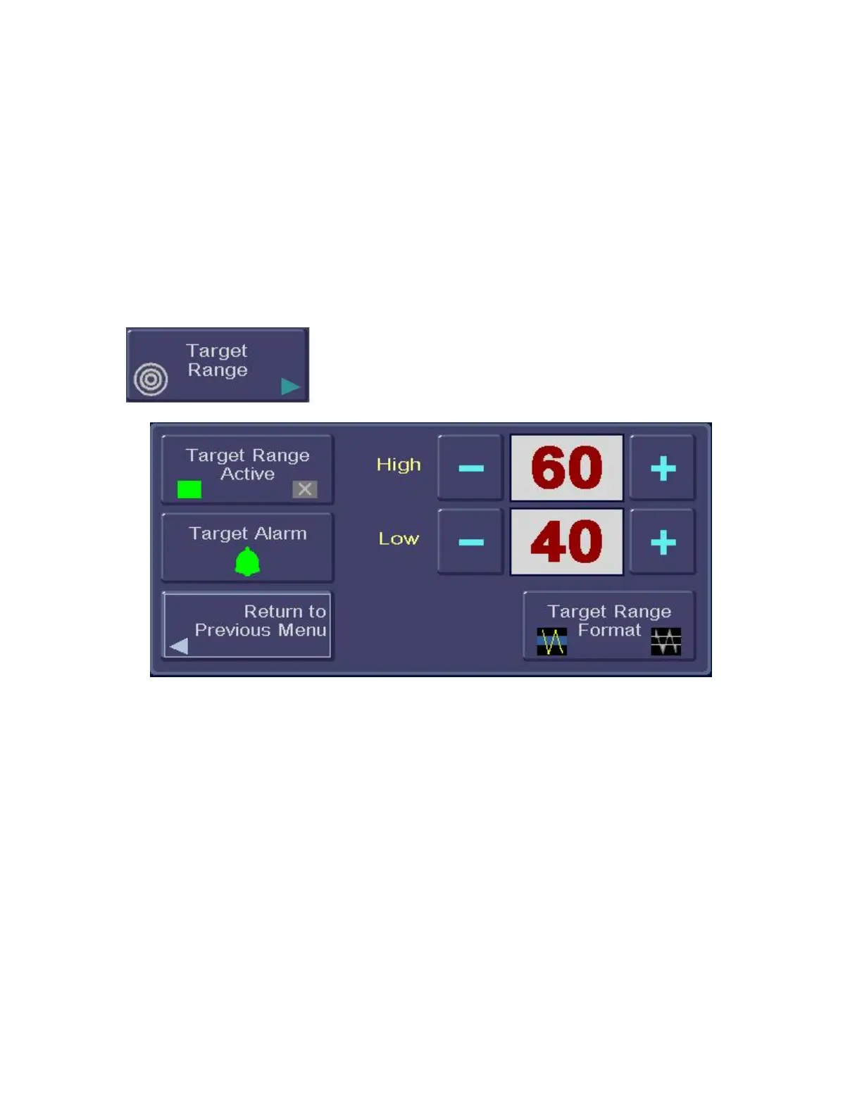 To set the Target Range options, press [Target Range]. The Target Range Screen displays.