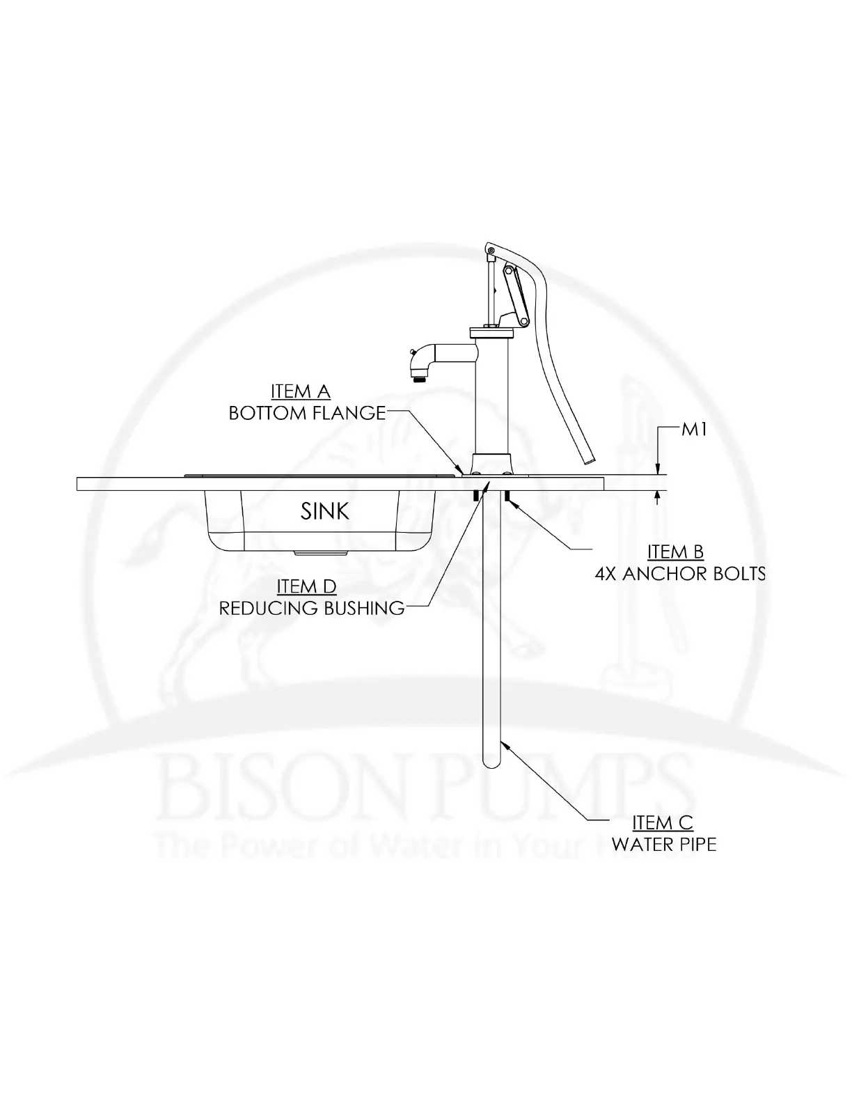 Bison Pumps 1900 - Detail A: Standard Sink Installation