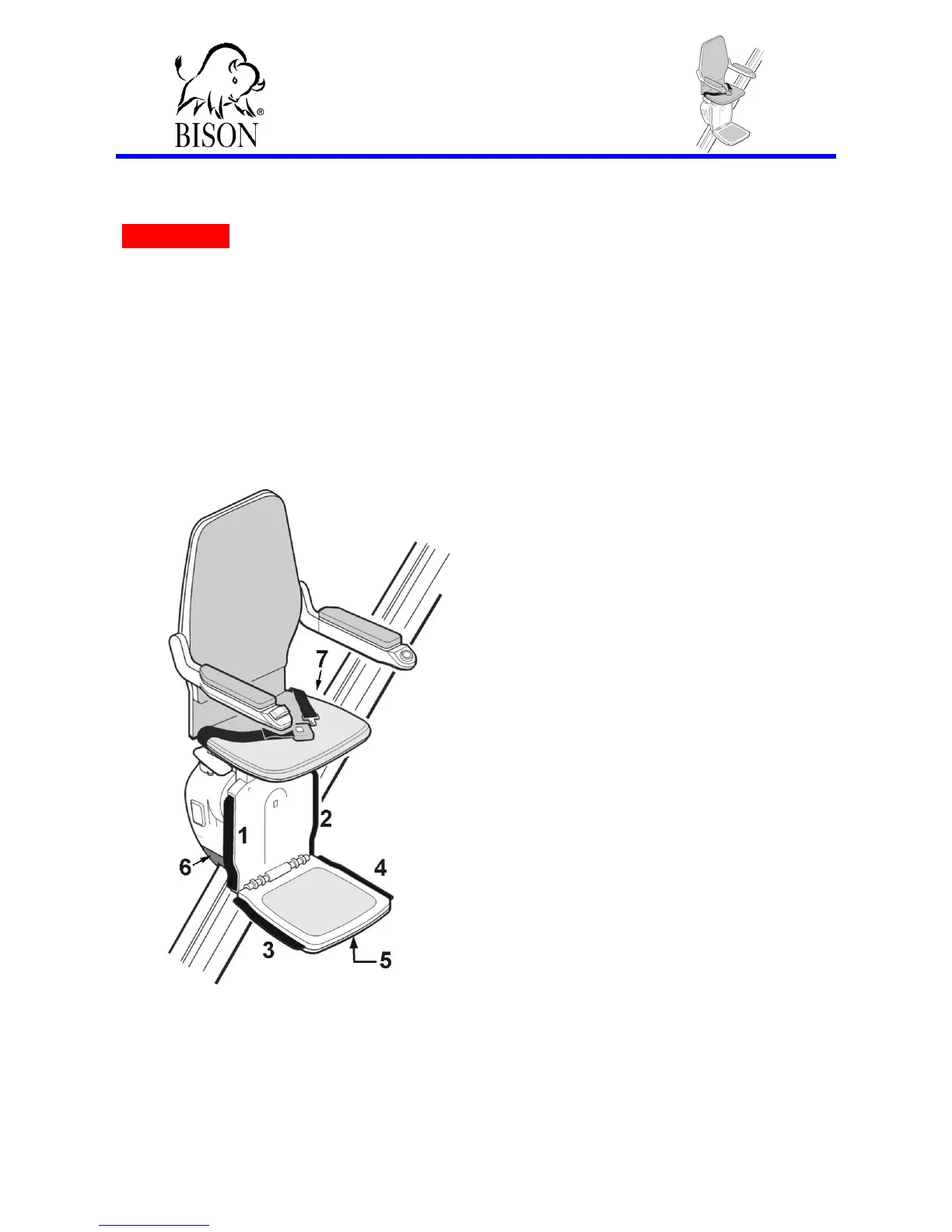 • Do not exceed the safe weight limit the Stairlift is designed to carry (see the label