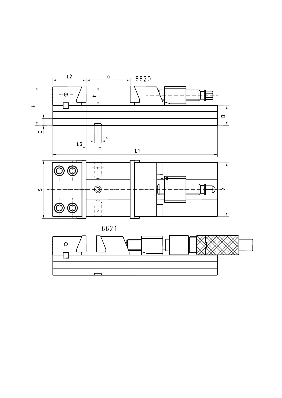 Basic specifications of precision machine vises - type 6620 and 6621 are shown