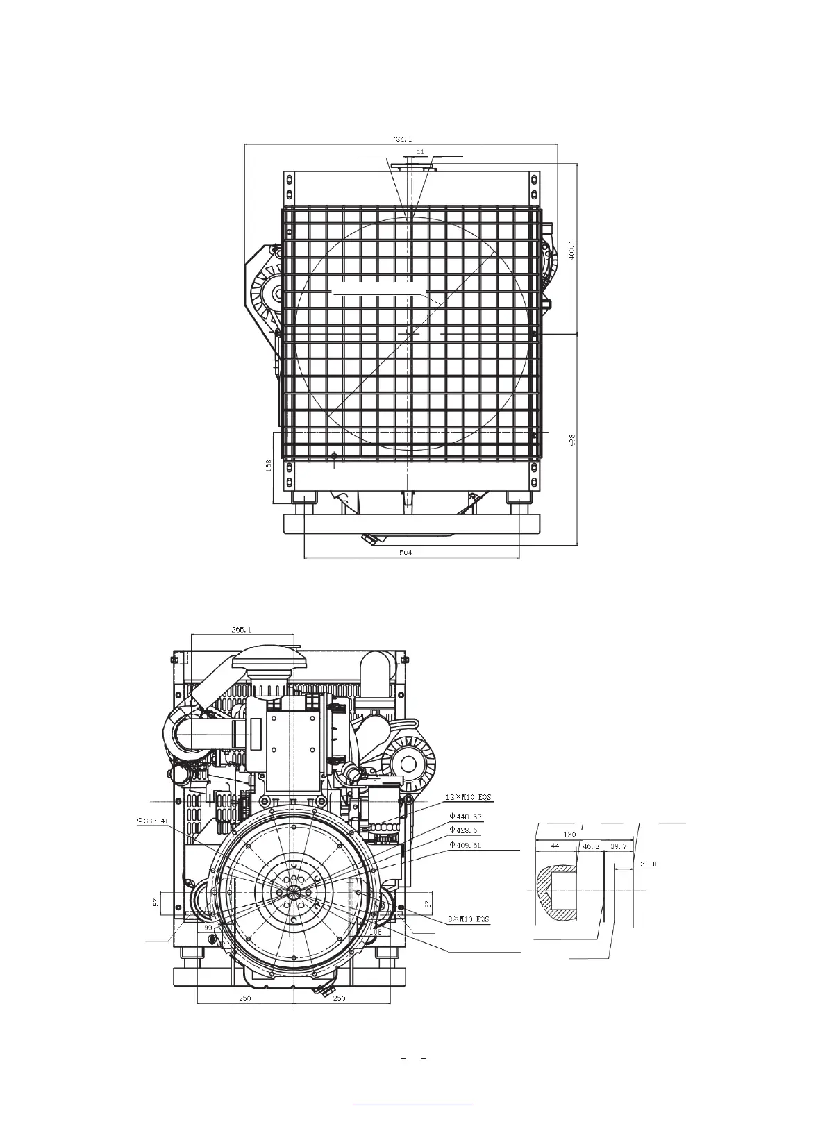 center of crankshaft center of fan