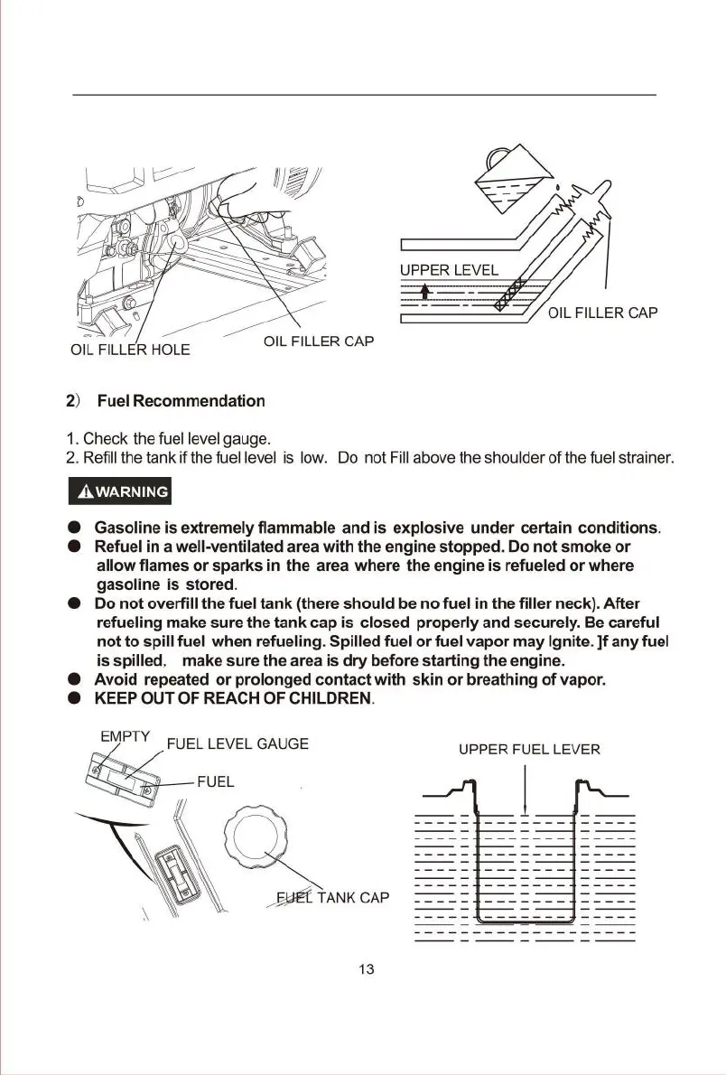 • Refuel in a well-ventilated area with the engine stopped. Do