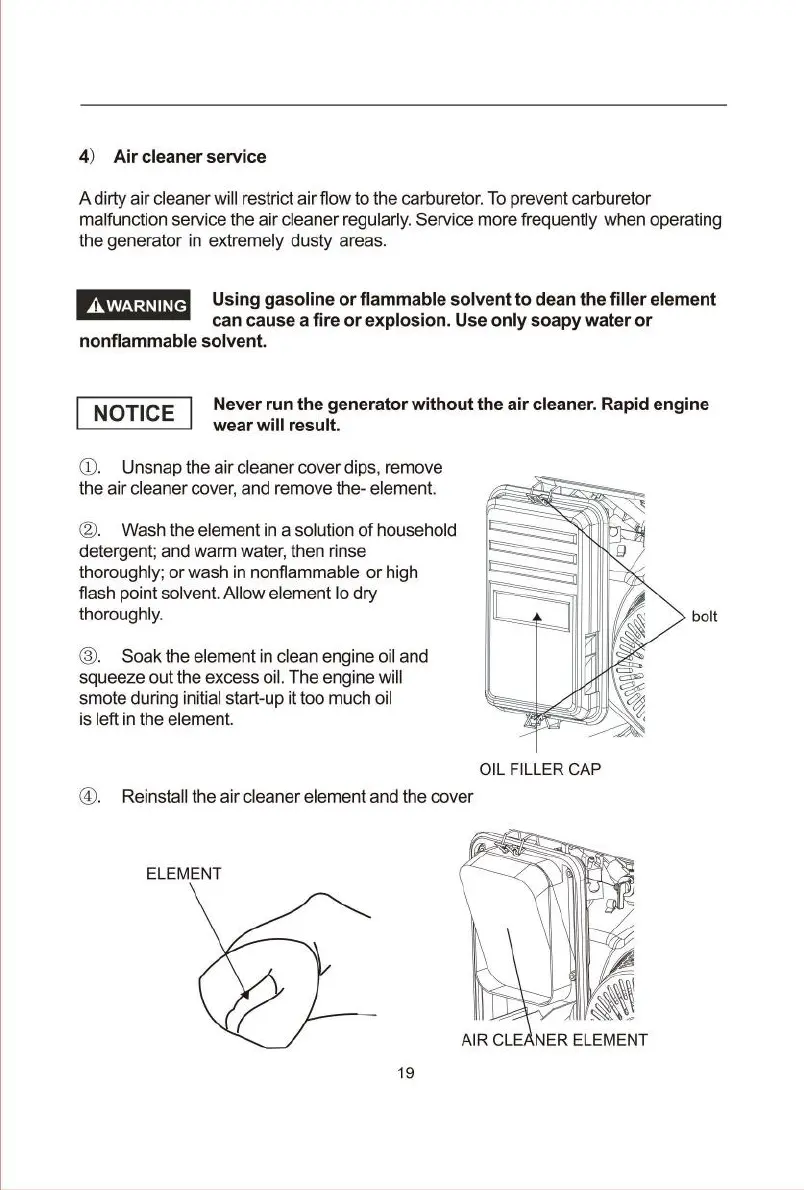 malfunction service the air cleaner regularly. Service more frequently when operating