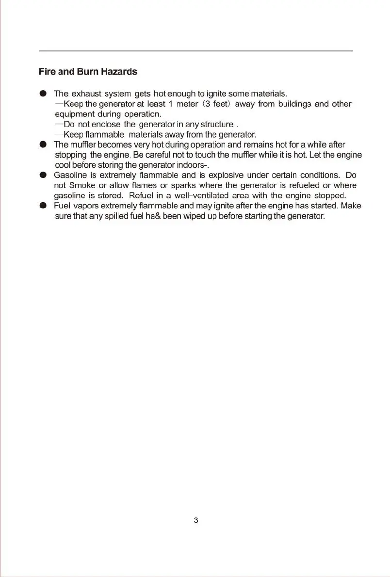—Keep the generator at least 1 meter (3 feet) away from buildings and other