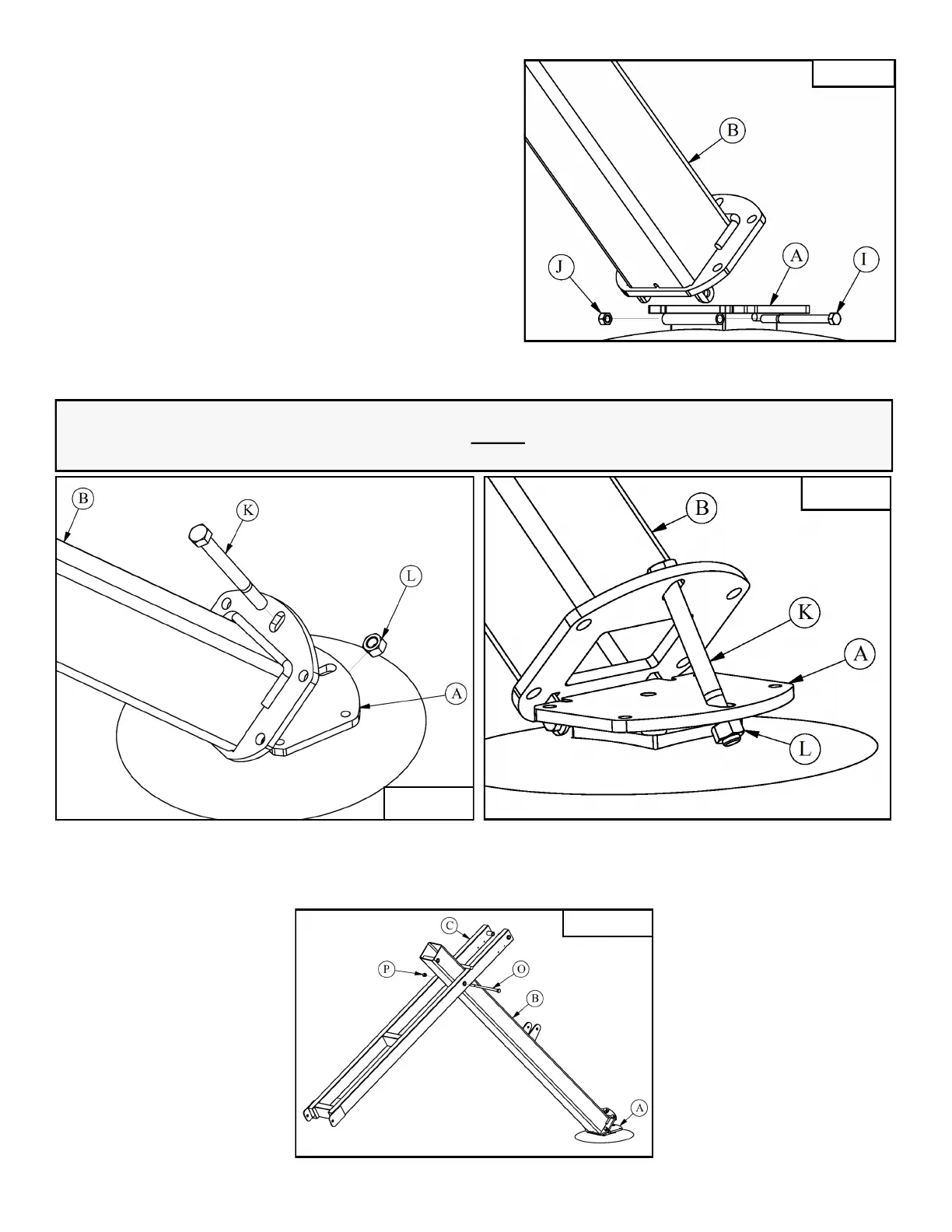 holes in the Pole (B). Attach the Lower Arm (C) to the Pole (B) with a 5/8” X 12” Hex Bolt (O) and a