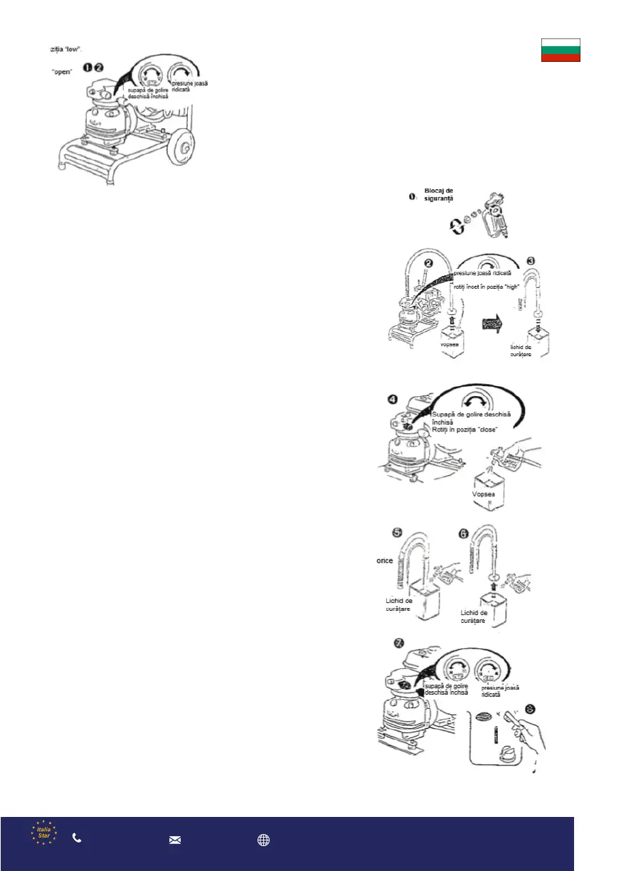 боядисване. 6. Извадете смукателния маркуч от почистващия разтвор