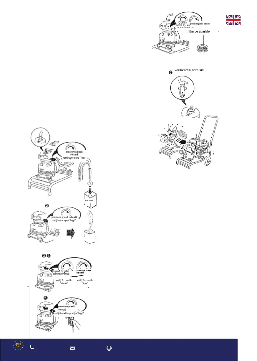 half-revolution towards “low” 4. Turn relief valve to “close” 5.
