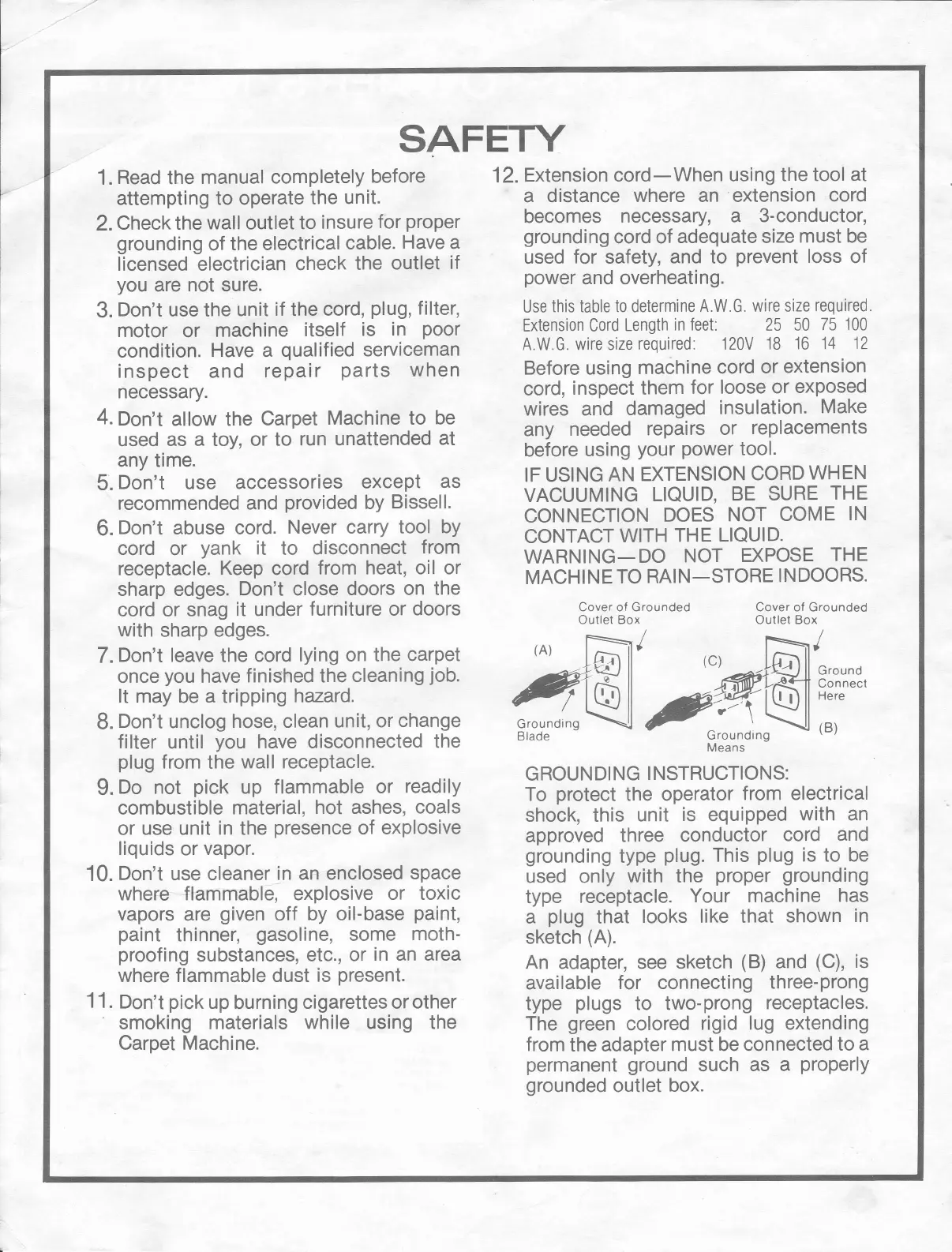 Bissell 1630 - Safety Precautions; General Safety Guidelines; Electrical Safety and Grounding