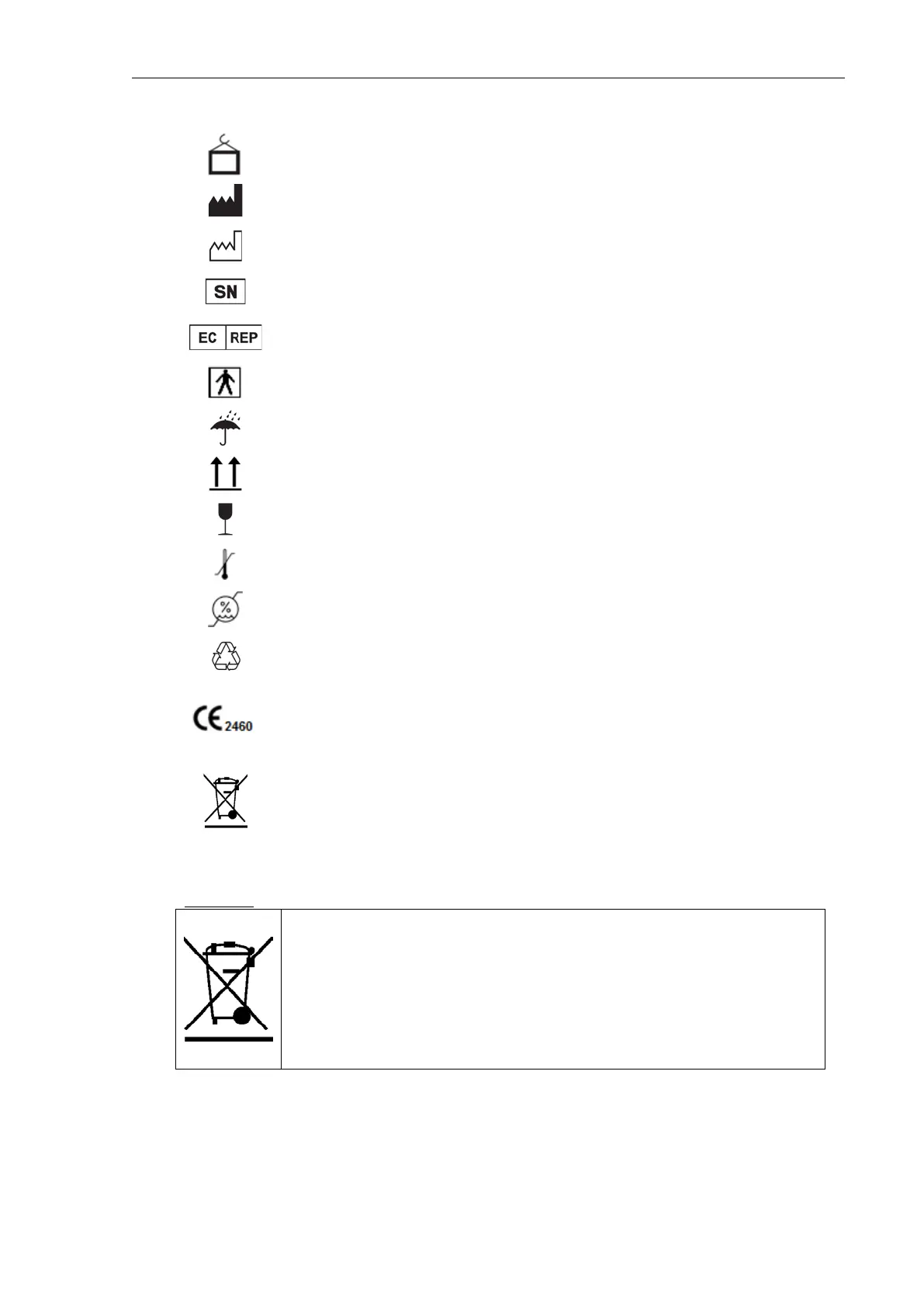 This symbol indicates the humidity limitation for operation, transport, and