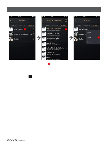 3. Click ‘Menu’ icon [ ] at the ‘Playlists’ screen for (Play all / Delete / Rename) menu to pop up.