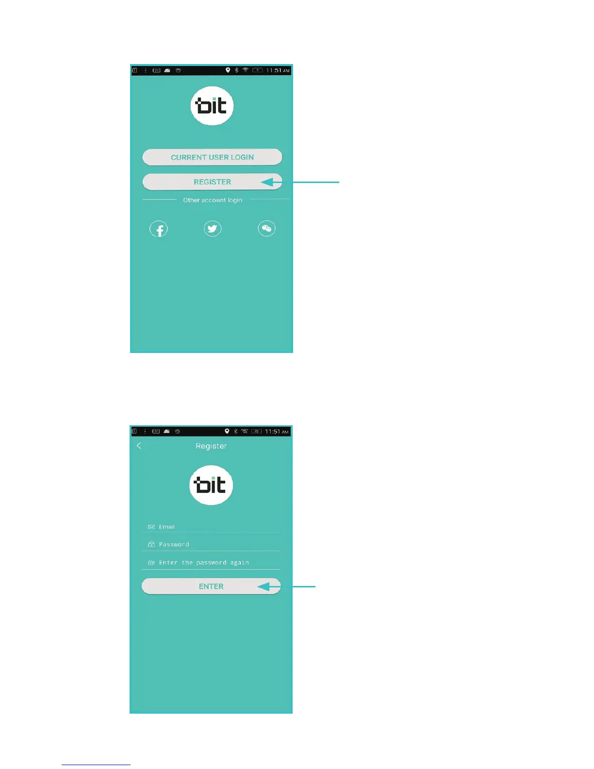 bit S1 - Android App Registration and Login; App Registration Screen for Android