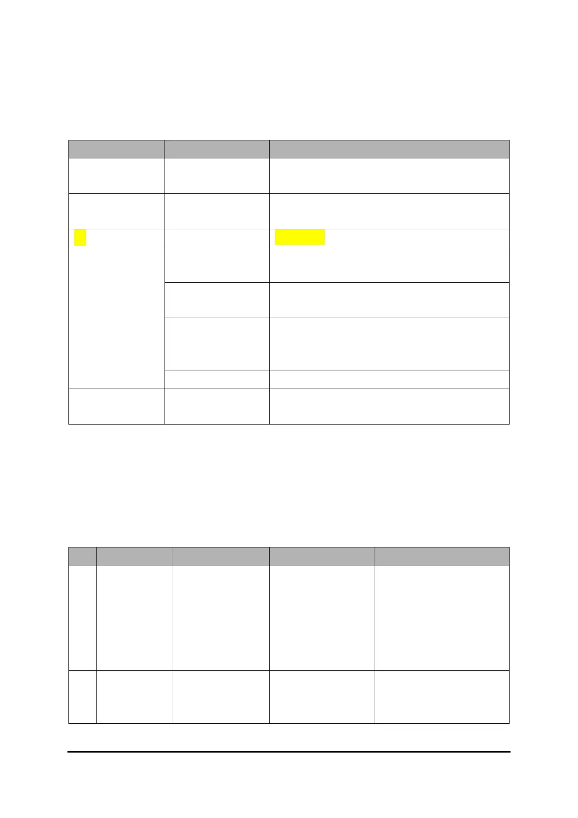 Host Command function list table