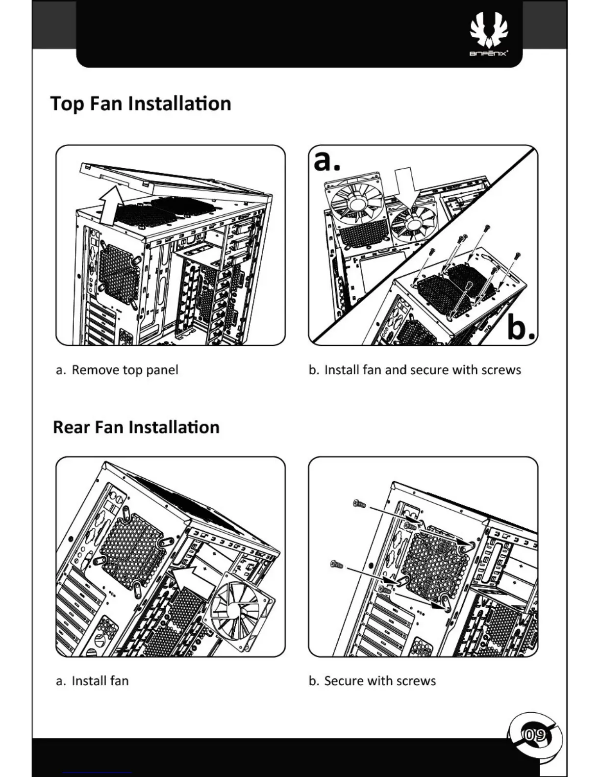 BitFenix Shinobi - Fan Installation; Top Fan Installation; Rear Fan Installation