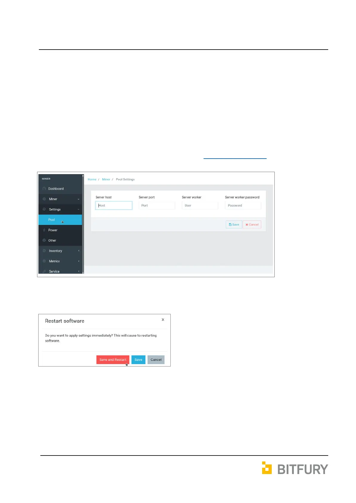 Miner → Settings → Pool menu: