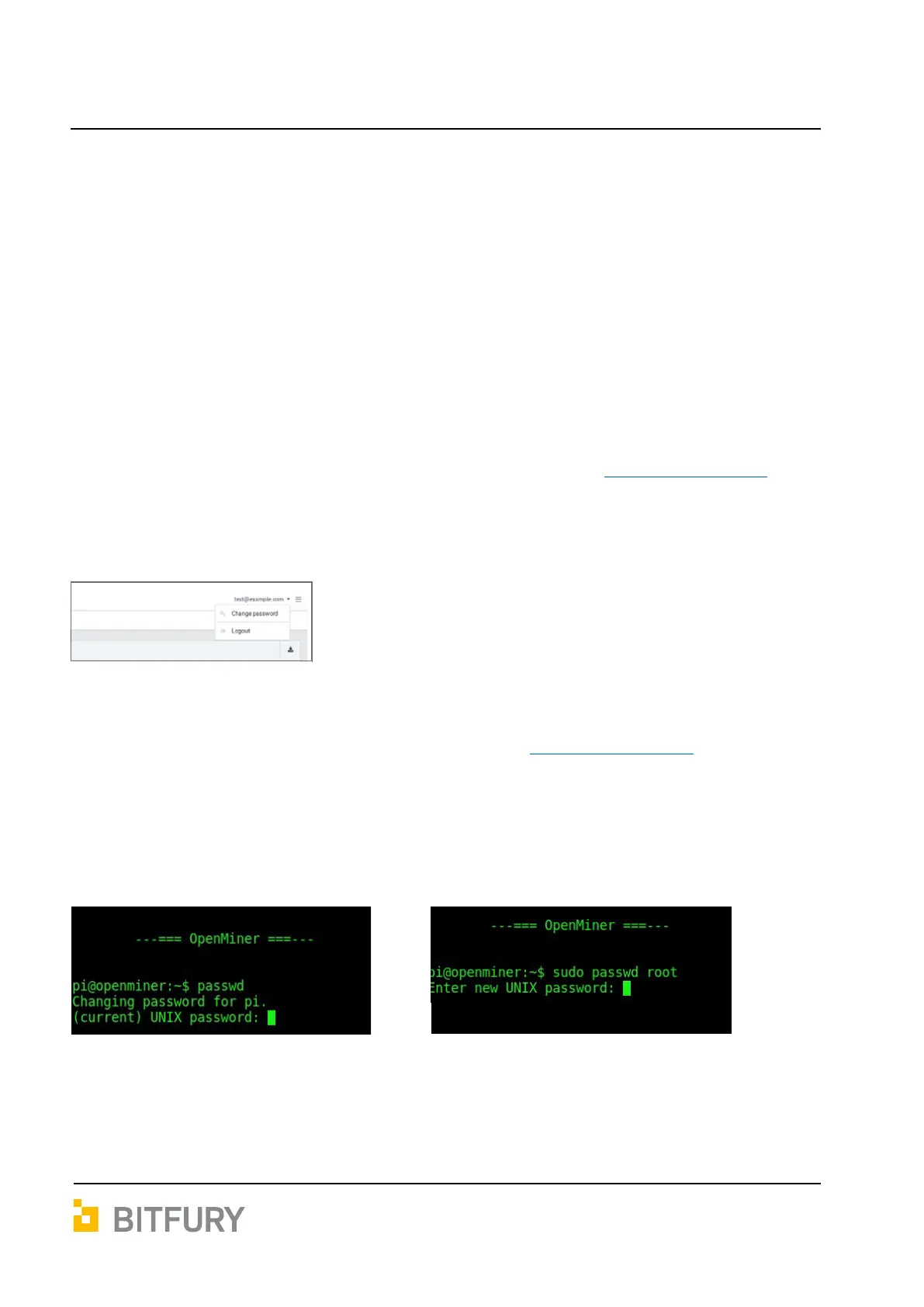 SSH access (any SSH client to your Open Miner IP address, for example ssh pi@192.168.1.224