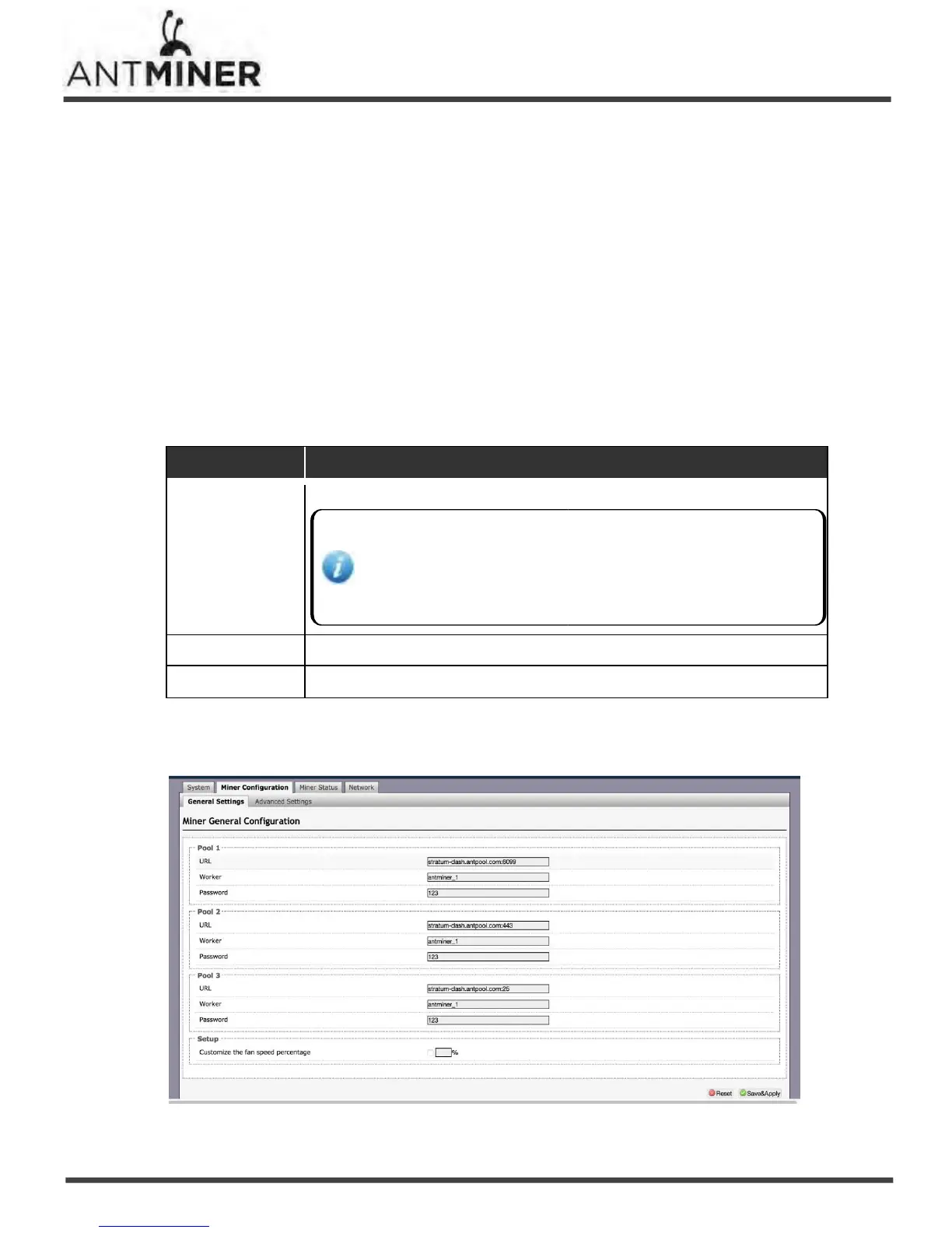 The AntMiner D3 can be set up with three mining pools, with decreasing