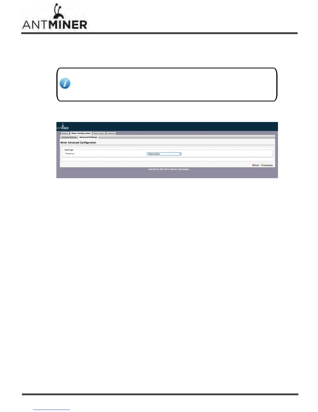 You are able to modify the frequency value through ‘Miner Configuration >Advanced Settings’.