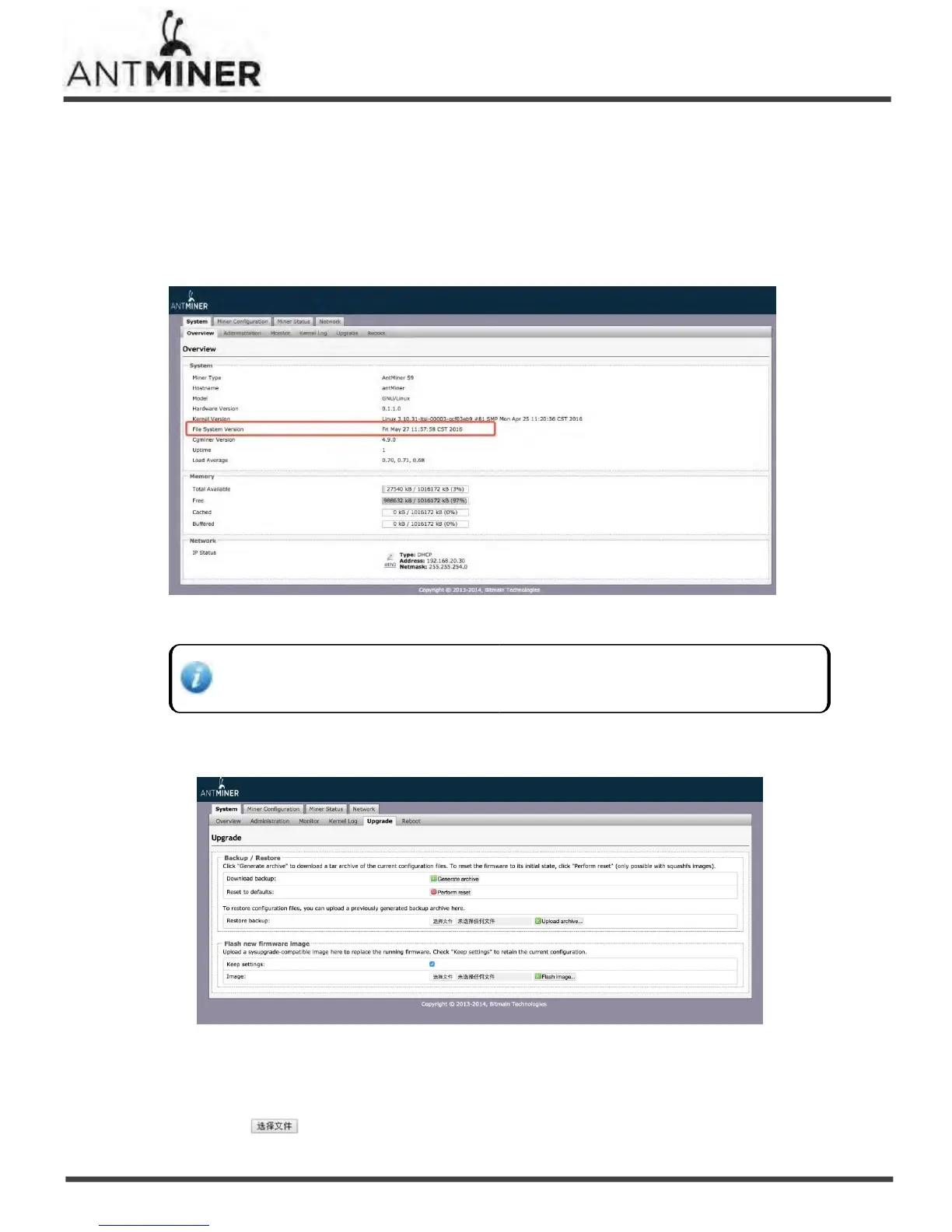 2. File System Version displays the date of the firmware your miner use. (Screenshot below of S9 AntMiner